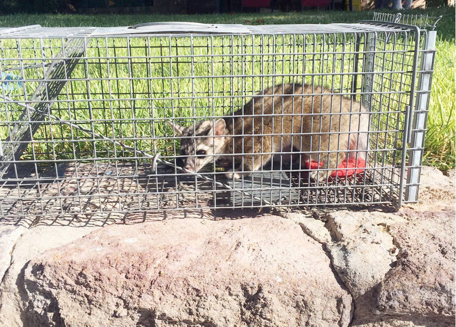 The nocturnal mammal, a relative of the raccoon, has been running along power lines and coming into his home for a few weeks before being caught.