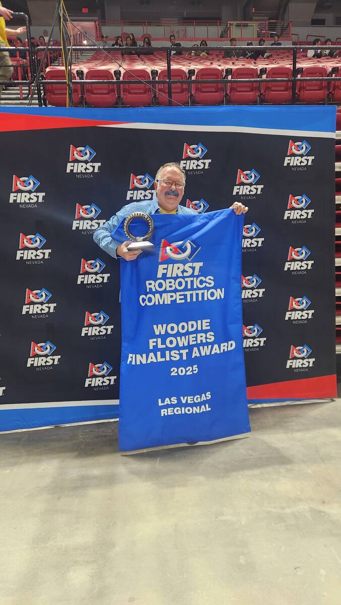 Mentor John Richner, who initially championed the team as a parent 17 years ago and has remained a big part of it even though his kids are now close to 30, was selected a Woodie Flowers finalist for the Las Vegas Regional. According the Schultz, this award is basically a “mentor of the year” trophy and Richner was nominated by the students on the team.