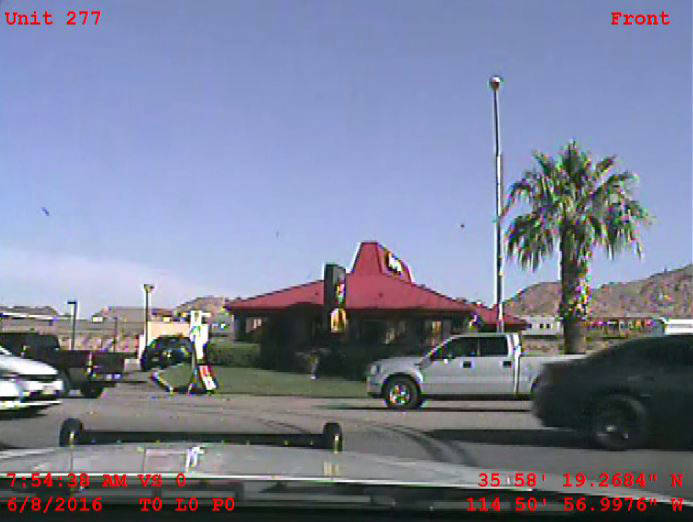 It was from the officer who was with Boulder City Sgt. John Glenn when he arrested Hunt on June 8, 2016, after he repeatedly walked back and forth in a marked crosswalk to protest a police-sanctioned pedestrian enforcement detail.