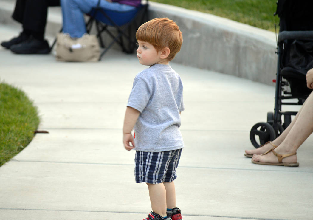 Dante Murphy stops and listens to the music Friday at the benefit concert at the Boulder City Library amphitheater.