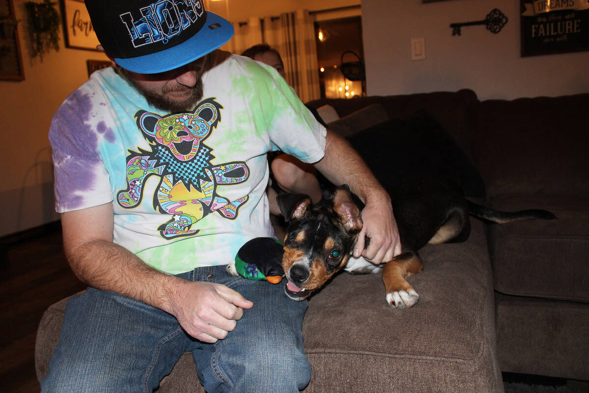 “I didn’t want to see him in the shelter any longer and with Christmas coming up, that was another reason why I didn’t want him there,” Shane said. “We’d been following him from the first day we saw the post on the Friends of the Boulder City Animal Shelter Facebook page. Every day I looked to see what the updates were and how he was doing. At first, so many people were saying they wanted to adopt him that I really didn’t think we’d have an opportunity to do so. How the community rallied and came together to help him, just blew my mind and inspired me to want to help them (shelter).”