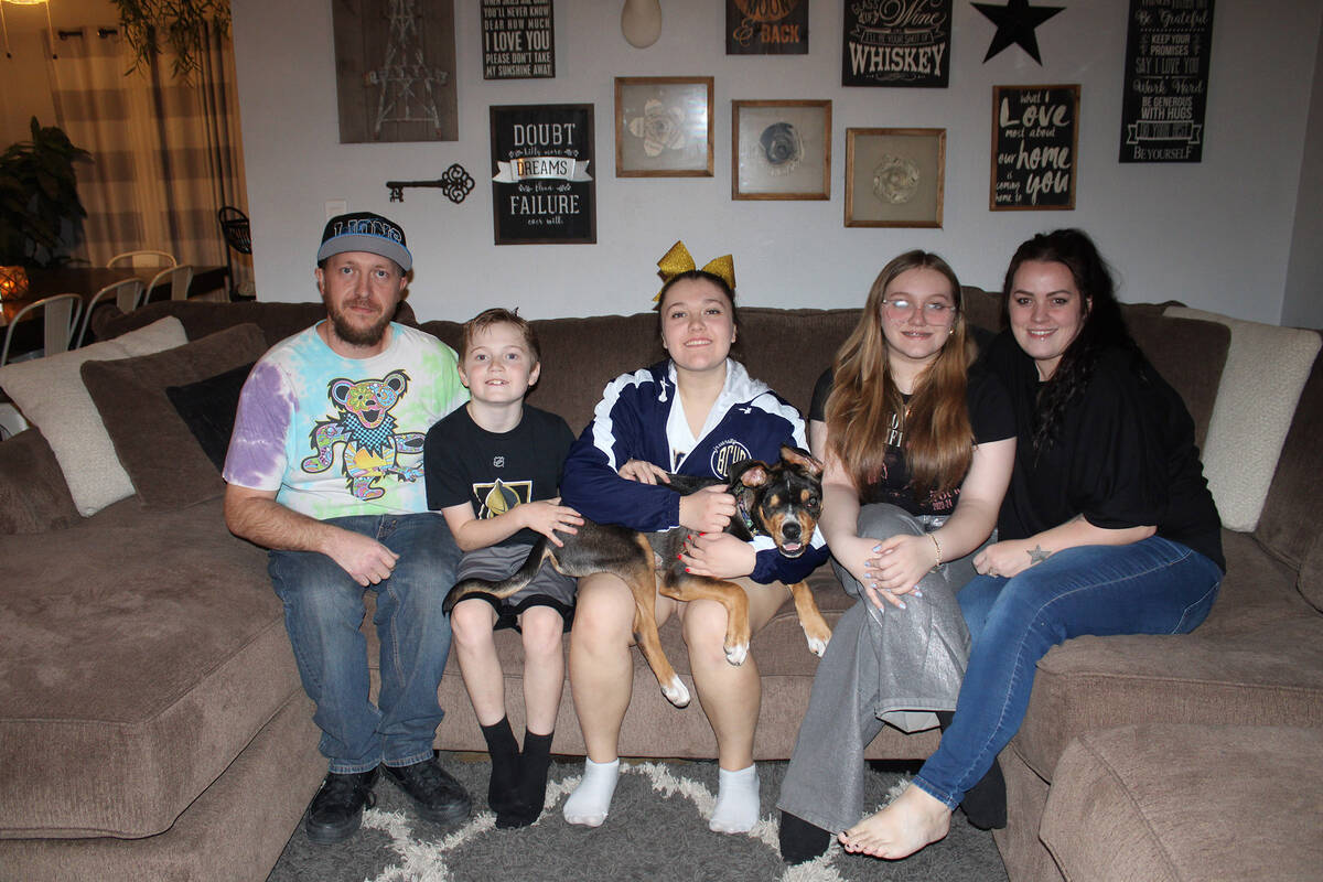 Arguably the most famous dog right now in Boulder City, the family said when out for walks or at events like the recent New Years’ Eve block party, people are always asking if it’s him. Many want to pet him or take a selfie. And to answer the question before it’s even asked, he now has a personalized harness with his name embroidered on both sides.