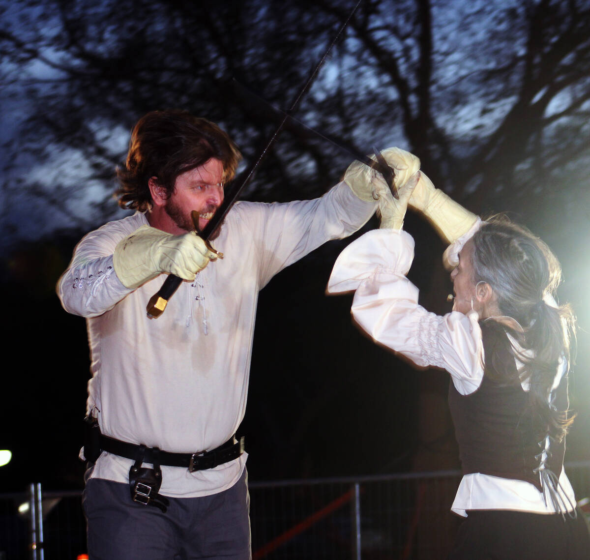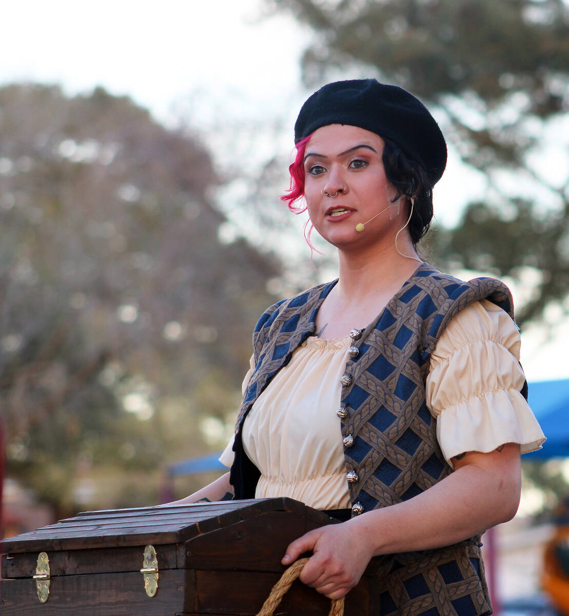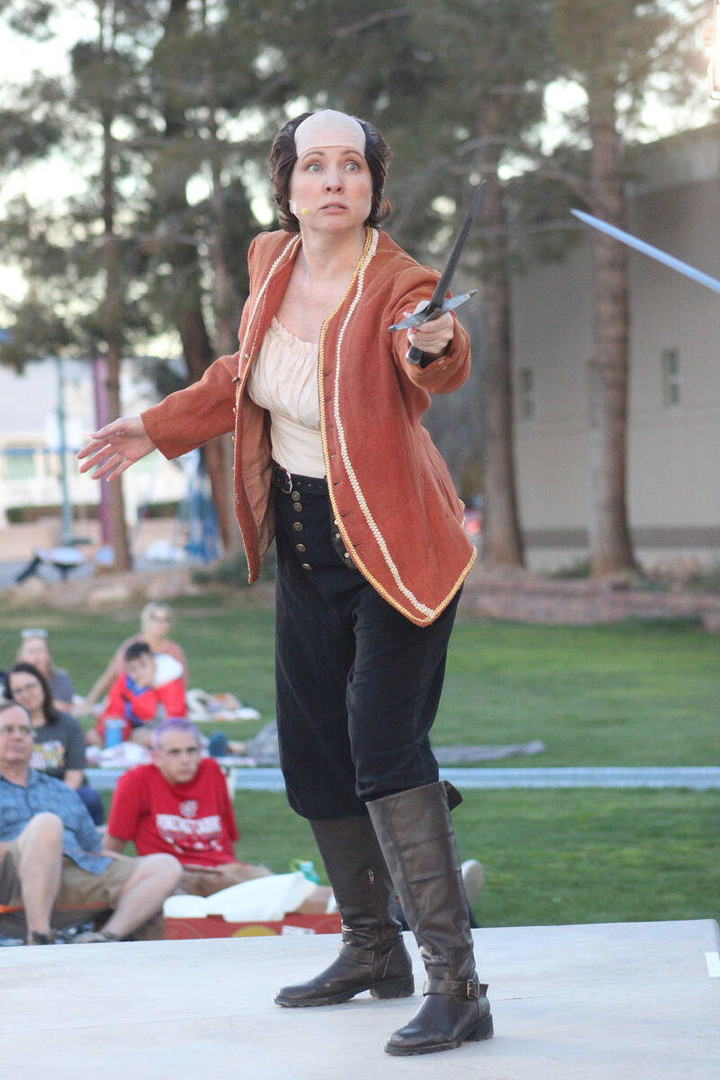 This past Friday evening, a large and appreciative crowd turned out for the Nevada Shakespeare Festival’s performance of “Henry V” in Bicentennial Park. The performance was hosted by Main Street Boulder City and the Boulder City Chamber of Commerce. NSF featured six actors and actresses, who each played six to eight characters during the 80-minute performance.