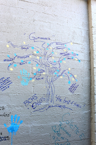 Decades of graduates from the school came to pay their respects and share memories of the high school. Walls on two-thirds of the 200 building, as well as the 300 building were adorned with blue and gold handprints, names and messages left by alumni.