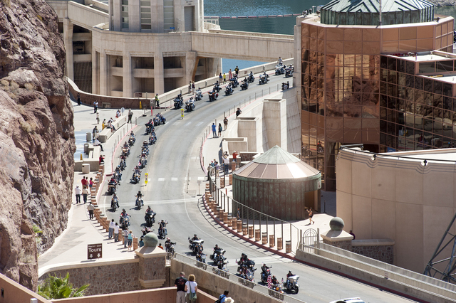 The motorcyclists began their journey from the Arizona side of Hoover Dam for the 20th consecutive annual Flags Over the Dam ride. When they reached Boulder City their numbers had swelled to an estimated 2,000 of their fellow riders. Several clubs and manpeople not affiliated with any group made the trek to show their respect and to honor fallen warriors.