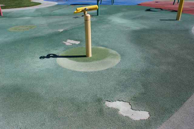Before the splash park opened for the season, there was a large hole that needed to be repaired. That was when the safety surfacing problem was noticed.