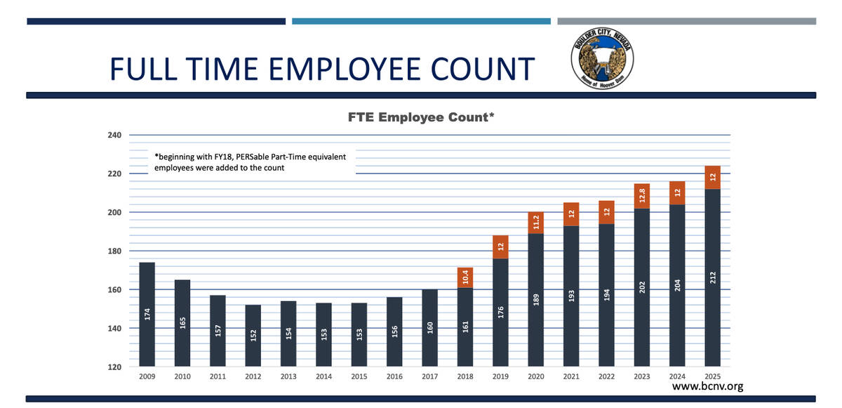 If all positions are approved, it would represent a more than 25% increase in the number of full-time city employees in a period covering seven budget years. After staying pretty consistent through most of the decade starting in 2010 at 150-160 full-time staff members, the number started to increase rapidly in 2019. The eight additional positions being sought would bring the full-time head count to 212, which would represent a 32% increase since 2018.