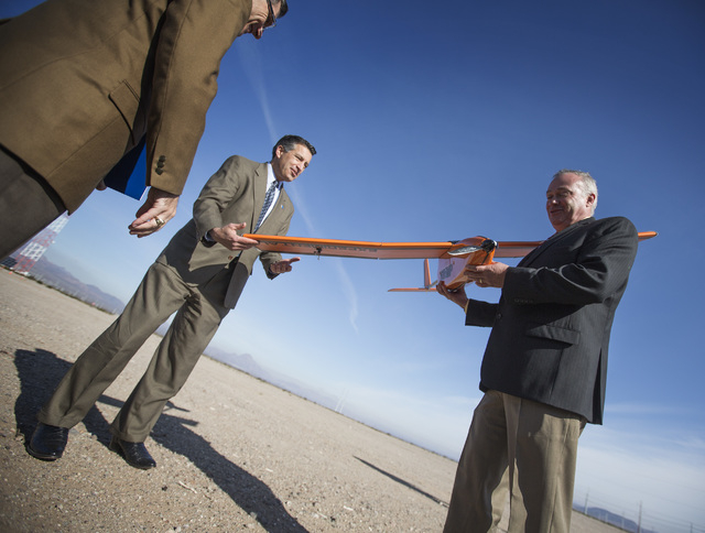 Sandoval, Sen. Dean Heller, R-Nev.; Rep. Joe Heck, R-Nev.; and Glen Martin, regional administrator of the Western-Pacific Region of the Federal Aviation Administration, had just lauded the yearlong journey Nevada had taken to reach Friday’s test flight.
