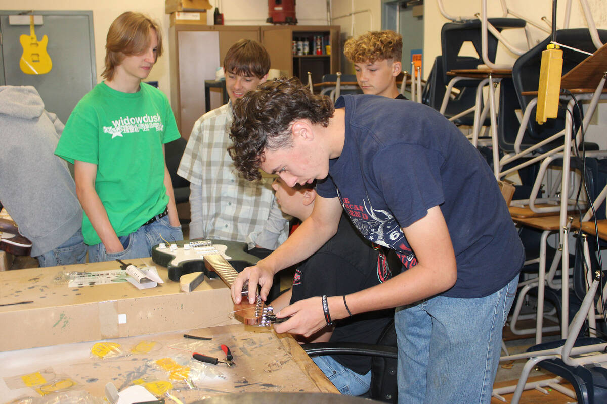 “When they see the finished product and are holding it in their hands, you seem the gleam in their eyes,” Archuleta said, adding that with increased curriculum, he’s hoping the school will turn the class into one that lasts an entire semester next year. “I built my first guitar when I was in high school in wood shop. Ever since then, I’ve enjoyed playing. So, being able to help the kids is very rewarding.”