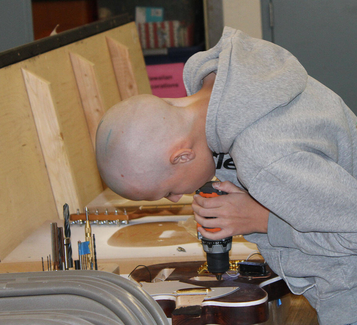 Toal, who along with her students, built her own guitar and enjoyed the painting process, said, “I’m so impressed with their ability to work independently, to help one another, their interest in the mechanism itself and the process of building a guitar. Many have brought great skills to the table, ones they probably picked up with the families. They’ve taken a lot of pride in their work and seem to really enjoy it. It’s been nothing but a positive experience.”