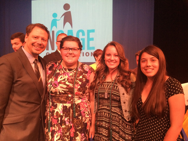 Clark County School Superintendent Pat Skorkowsky, far left, honors Boulder City High School students, from left, Amy Murphy, Amy Eschner and Ekaterina Shirbroun at theNext Generation Actively Gaining Experience awards more than 400 hours each and volunteer regularly at the Boulder City Hospital. Shirbroun is a sophomore with more than 200 hours of community service.