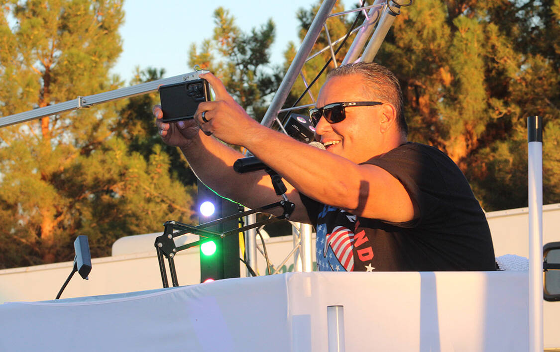 Emcee Mike Pacini asked the crowd to cheer as he went live with a video on Facebook at Veterans Memorial Park.