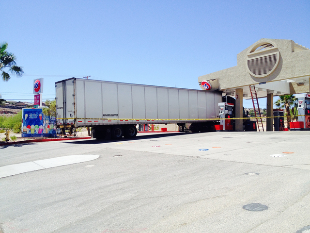 An 18-wheeler crashed through a section of gas pumps at the 76 gas station on U.S. Highway 93 and Ville Drive on Sunday. It was still at the station Monday while the accident remained under investigation.