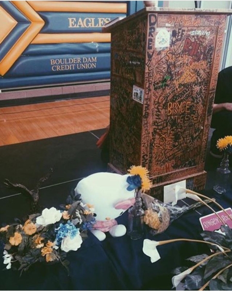 Leslie Ringen’s classroom podium was part of a Nov. 25 memorial for the Boulder City High School teacher who died Nov. 21. Ringen would let her students sign the podium as a sendoff at the end of every school year, Principal Amy Wagner said. The memorial was attended by 500-600 people who came to pay homage to the school’s two-time Most Inspirational Teacher Award winner, according to Wagner. “She was a remarkable woman,” Wagner said. “It wasn’t about all that she taught. It was all those life lessons that she instilled within us, and those lessons she told her students. We said goodbye to a legend.”