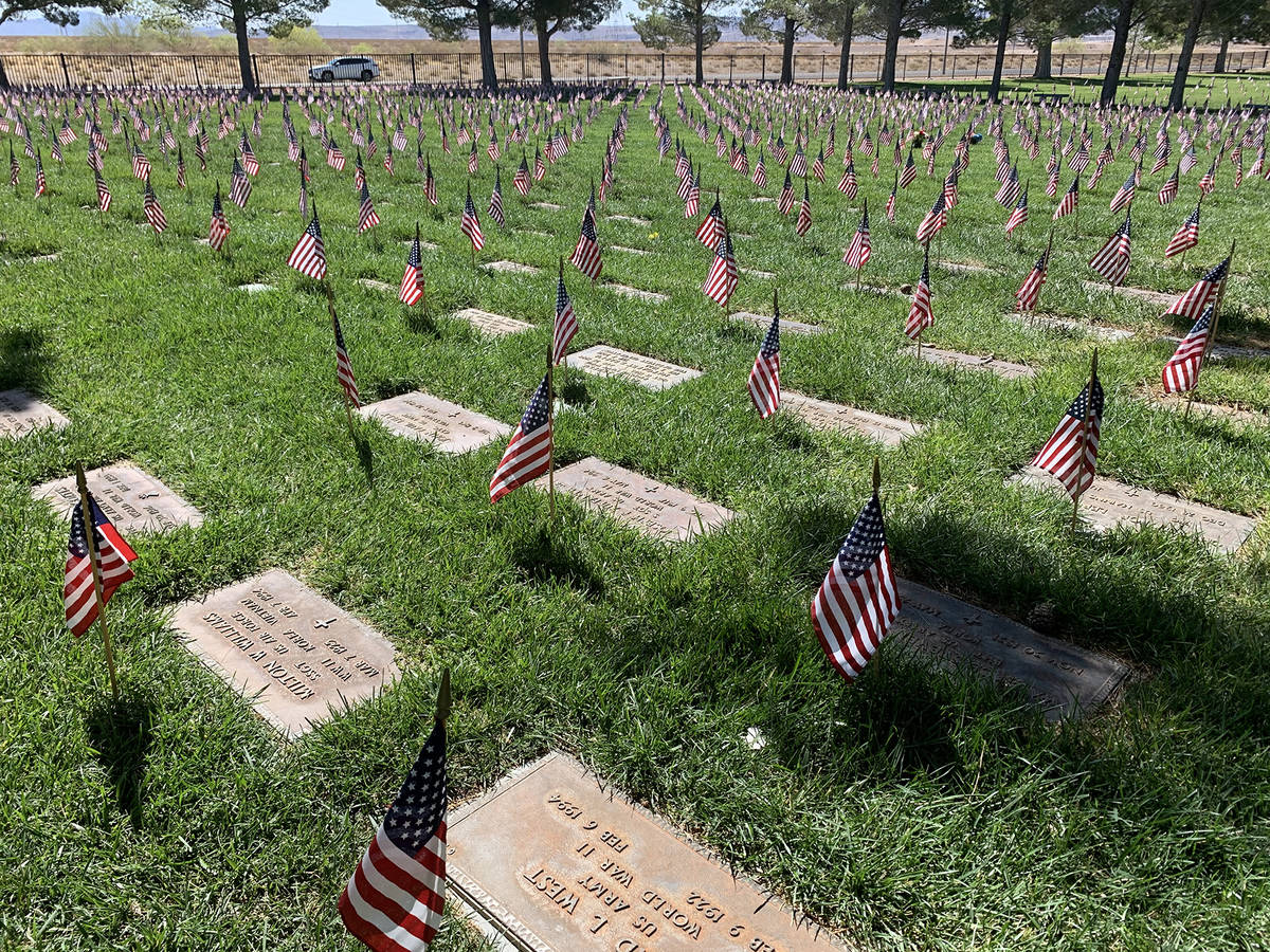 At the Boulder City Cemetery, members of American Legion, Post 31, and its auxiliary placed flags on the graves of veterans buried there.