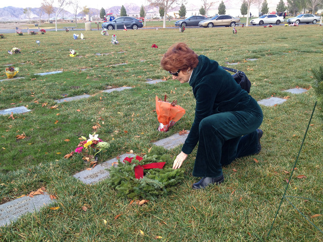 For Malinowski, placing the forest green wreath with the light red bow, identical to the thousands strewn across the Southern Nevada Veterans Memorial Cemetery is a pleasant experience, even though sadness made it all possible.