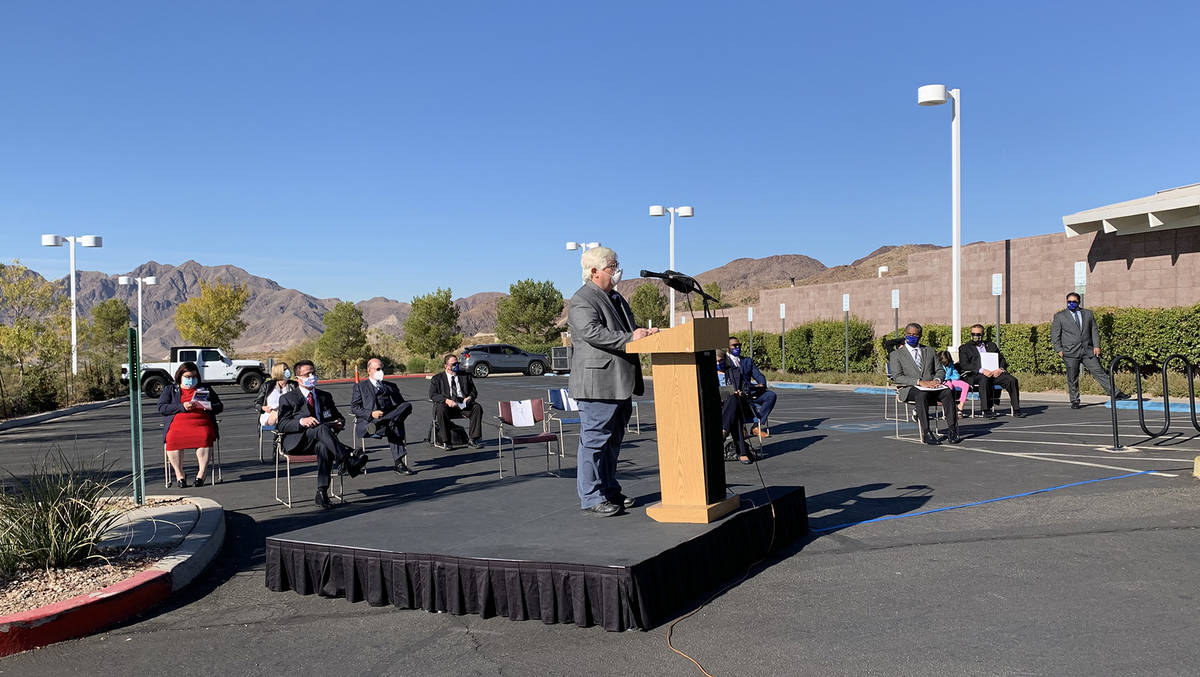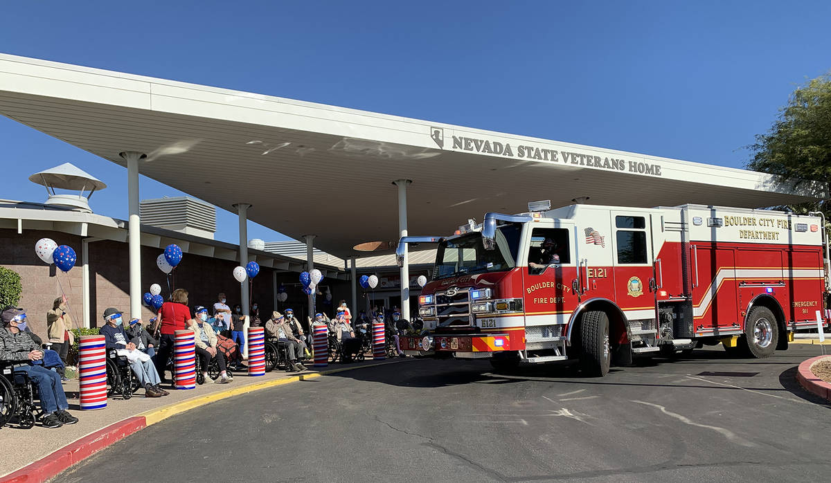 Eli Quinones, administrator of the assisted living facility, dedicated the ceremony to Ronald Michalski, a veteran and volunteer at the home, and Boulder City Police Department for its support and coordination of the day’s parade featuring first responders.