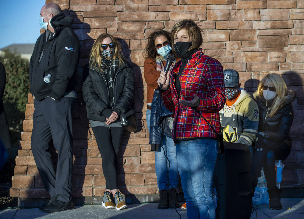 Congresswoman Susie Lee spoke during the afternoon gathering, promising safer roads and extending her condolences to the families. Heather Fisher said Lee is an avid mountain biker, though Lee didn’t mention her connection to the sport while speaking.