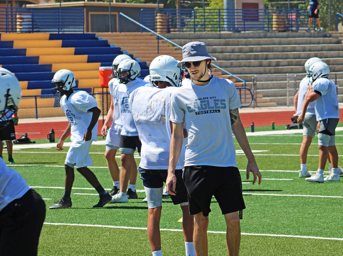 “The love of the game is really why I’m here, I just can’t stay away,” Reynolds said. “I’m really excited to work with the new generation of Boulder City quarterbacks and help build a reputation that we are a football town. My dad coached me all throughout my life and made me really appreciate coaching. It’s been really fun to be a part of this staff and coach with all the guys he used to coach with.”