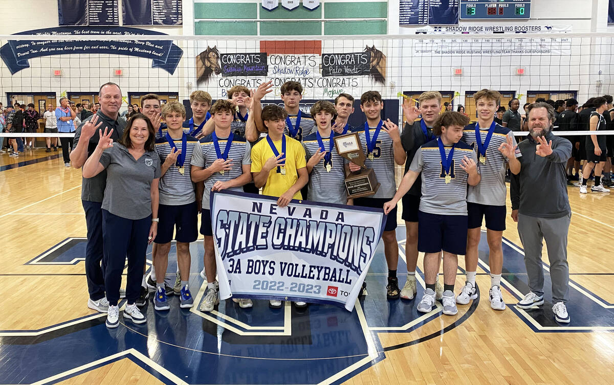 In dominating fashion, Boulder City High School boys volleyball won their third consecutive 3A state championship, defeating Sunrise Mountain 3-0 on May 17.