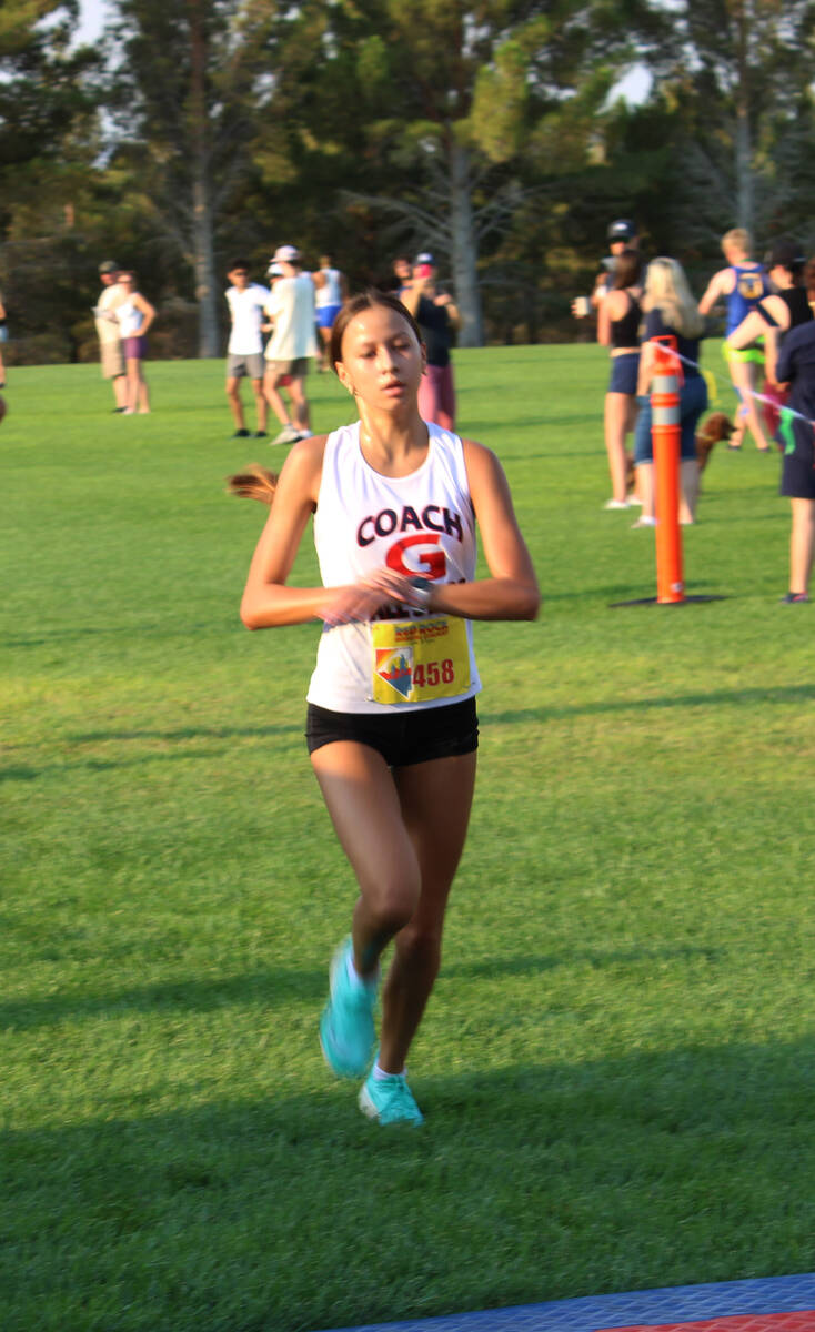 The race, which was sponsored by Southern Nevada Legends of Cross Country, was again held at Veterans’ Memorial Park. The course started on the soccer field, went briefly out into the nearby desert, up around the top fish pond, then down to the soccer fields. Competitors completed this course twice.