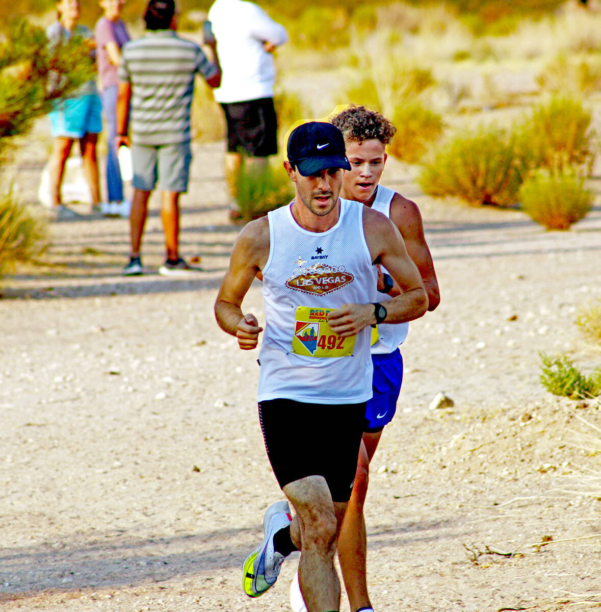 In terms of the weather he said, “Luckily, I’m from Southern California and I’ve lived here (Southern Nevada) for 15 years so I’m used to the heat. Despite that, you still have to adjust your pace because you can’t run as long and as hard. You really have to hydrate. It’s not real complicated stuff but it’s necessary. It’s really simple — you either keep running or you don’t.”