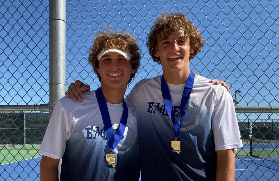 Olivia Mikkelson and Tegan Pappas defeated Ashley Hofflander and Peyton Barsel 6-3, 6-3 to become the Lady Eagles’ first individual champions.