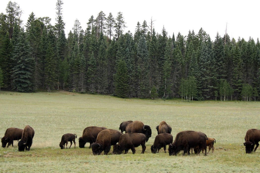 From Las Vegas, it takes about four and a half hours to get there. The final 45-mile leg, from Jacob Lake, Arizona, to the North Rim, is a treat in itself. There are open lush meadows, many boasting wildflowers and small ponds, which are especially good places to see wildlife at dawn and dusk. The park is home to deer, wild turkeys, badgers, bobcats, mountain lions and even a few black bears. Surprisingly it is also, for the time being, home to a herd of bison. They usually hang out in the meadows just after the park’s main entrance gate. Management plans are underway about how to handle this herd.