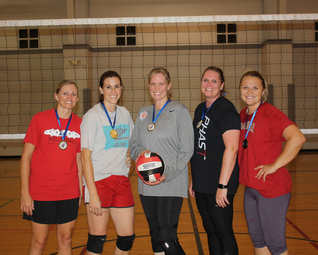 Members of the Volleygirls are Camis Higbee, Jacque Holt, Jennie Lewis, Kim Moolenaar and Kortney Tobler.