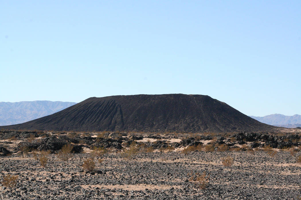 The crater is about 1,500 feet in diameter, and there are some wonderful views here. Look toward the north and you will see the Old Dad and Granite mountains in the Mojave National Preserve. Off to the east are the Old Women Mountains.