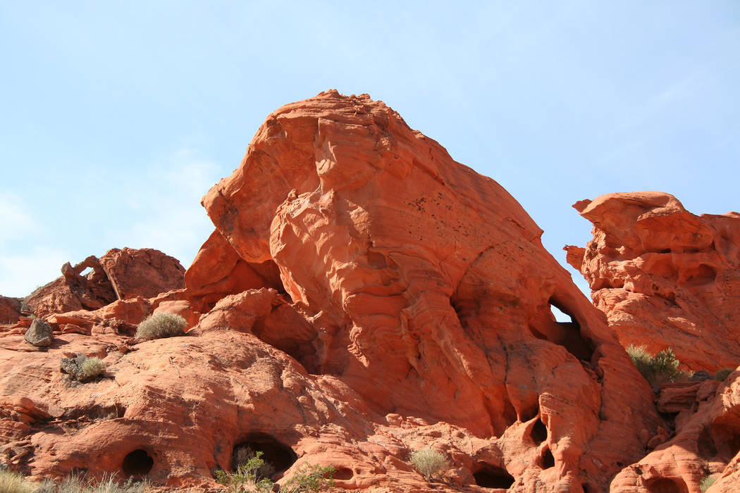 Bowl of Fire within the Lake Mead National Recreation Area is very similar to the fiery red sandstone formations in Valley of Fire State Park, with occasional outcroppings of yellow, pink and orange, but it is more remote and offers much more solitude.