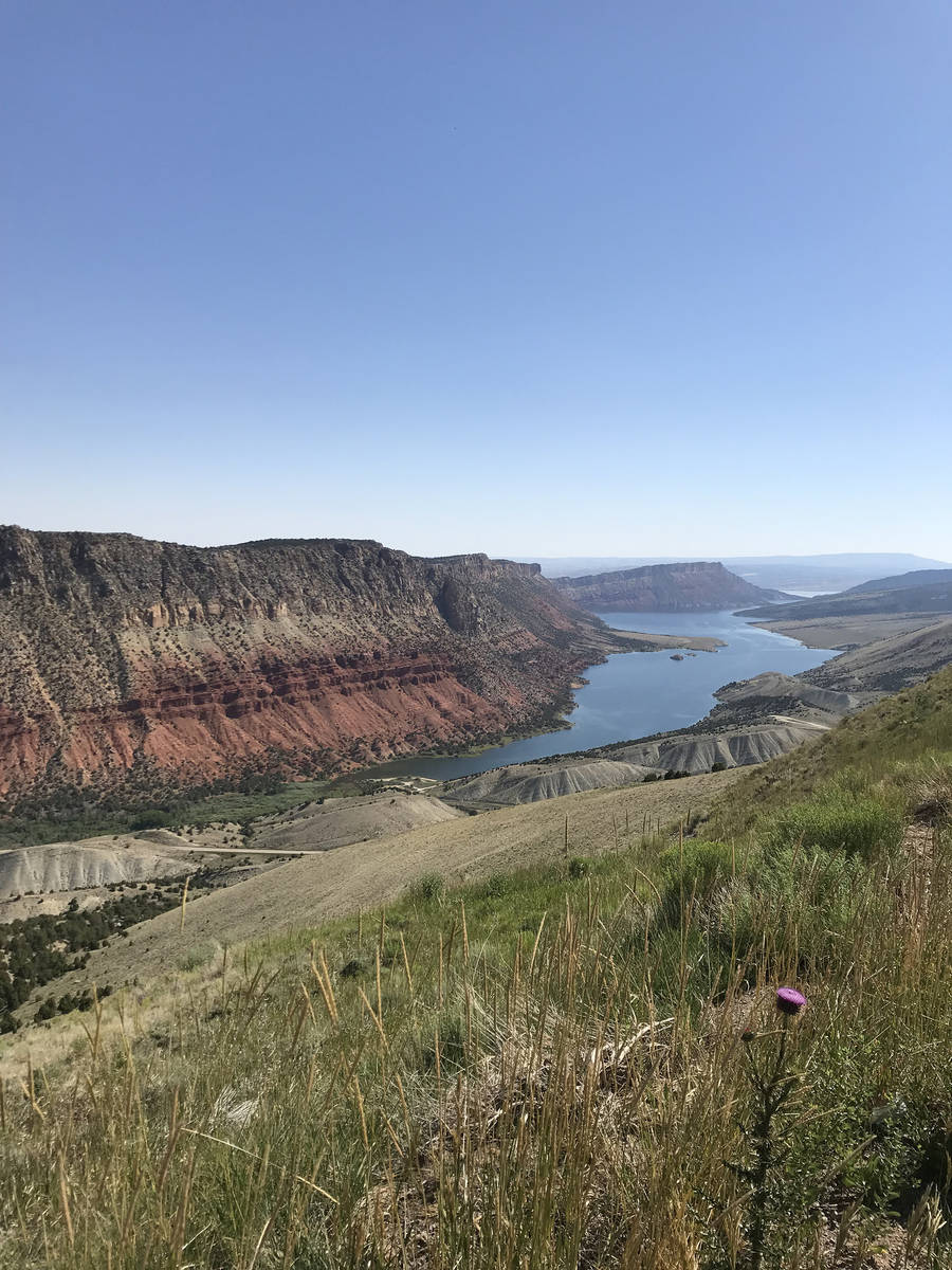 Summer daytime high temperatures rarely exceed the upper 80s in the lower elevations of the park, such as the reservoir itself, at about 6,000 feet. It’s even cooler in the higher elevations, such as at Red Canyon Campground, at 7,400 feet.