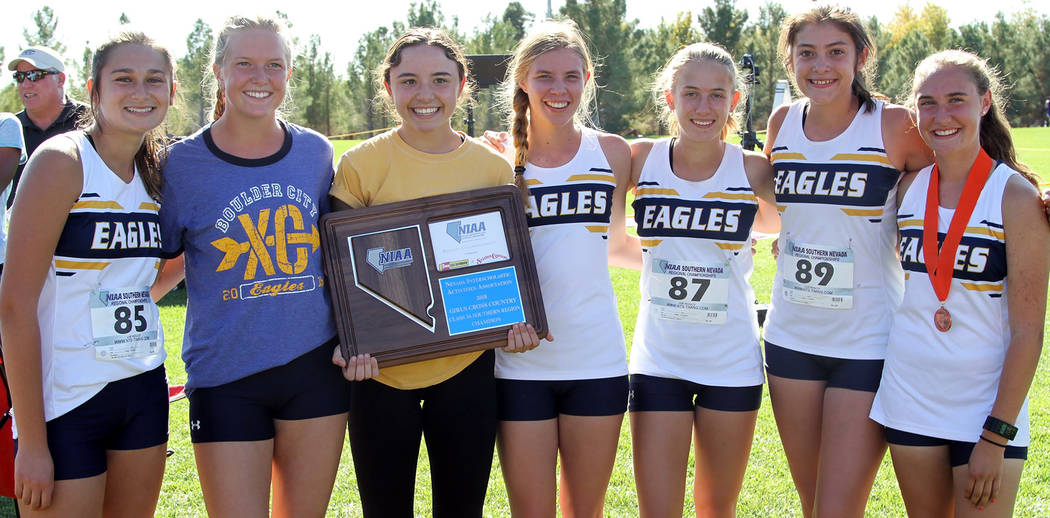 Boulder City High School girls cross-country team is making its way back to the 3A state championship meet after placing first at the Southern Nevada championships Friday at Veterans’ Memorial Park.