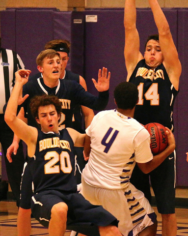 Boulder City boys basketball coach John Balistere is happy with his team’s play in their past few games. It is defensive-minded team that has positioned itself to grab a playoff spot as the season winds down.