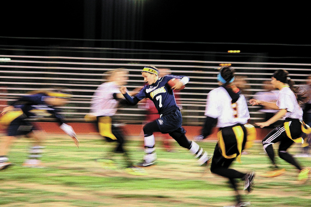 Through the season’s first two weeks the Lady Eagles were having plenty of fun, compiling a 5-0 record to sit in first place in the nine-team Southeast League. There were only four teams of 34 playing flag football in Southern Nevada that had not lost as of Tuesday.