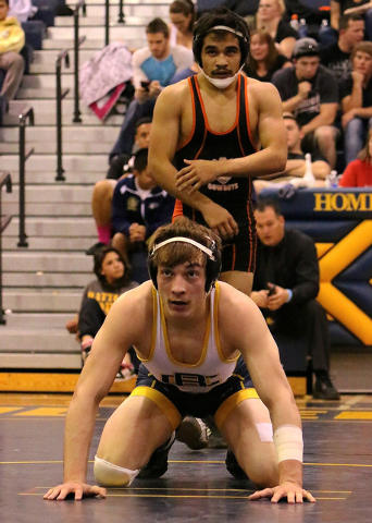 Senior Nelson Van Diest (182) lost his semifinal to Jonathan Crow of Pahrump Valley and then lost the third-place match 5-4 to Mojave’s Tariq Banks.