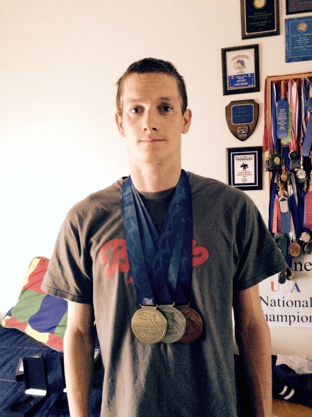His bedroom walls at home are covered with countless ribbons and plaques awarded from various swim competitions over the years. His latest accomplishments are gold and silver medals at the U.S. Swimming Phillips 66 National championships in San Antonio, Texas.