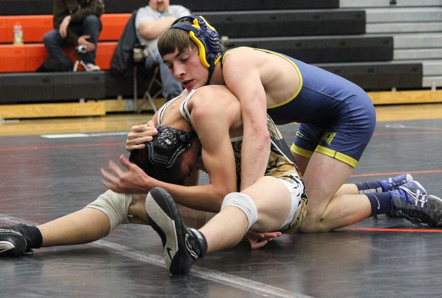 Nelson Van Diest (182) lost his semifinal match to Fernley’s Erik Wilson by pin at 3:04. Van Diest pinned Lowry’s Jed Johnson to win his quarterfinal match.
