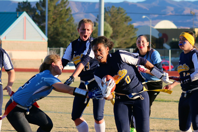In a defensive battle where just getting past midfield proved to be challenging, Boulder City drew first blood after Buettner’s goal-line dash up the middle capped a 60-yard drive to give the Lady Eagles a 7-0 lead with seven minutes to go in the first half.