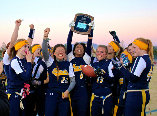 The referees signaled “no good,” and Sai looked at them with her mouth agape as a look of disbelief ran across her face. The Boulder City sideline erupted, and the play would stand as the game’s ultimate difference as the Lady Eagles held on to beat Centennial 7-6 to win the Clark County School District championship Tuesday at Del Sol.