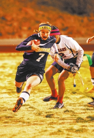 On Monday, the Lady Eagles played at home against Coronado. Carmell ran for one touchdown and threw for another as Boulder City defeated Coronado 20-0 and raised its record to 13-0 overall and 11-0 in the Southeast League.