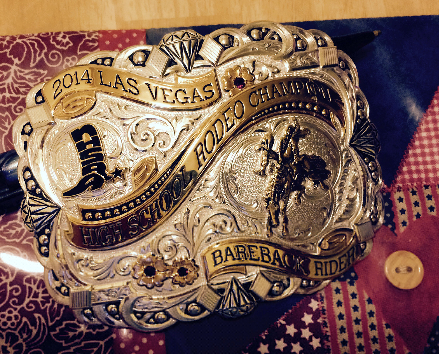 When his grandfather was recovering in intensive care from heart problems, Michael visited him with a Christmas present: the 2014 Las Vegas High School Champion Bareback Riders buckle.