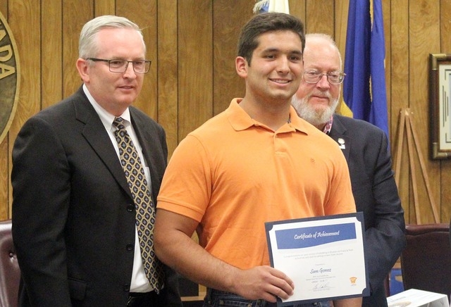 Also recognized Tuesday night by City Council for his achievements, senior track and field star Sam Gomez was presented with a certificate for breaking the program’s 30-year discus school record.