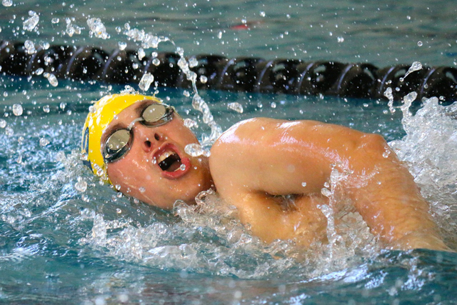 Junior Mandy Gebhart was also at her best, coming back as one of the Lady Eagles’ key returners this season. A state contributor last season for Boulder City, Gebhart seems well on her way to leading the pack once again following victories in the 200-yard individual medley and the 100-yard backstroke.