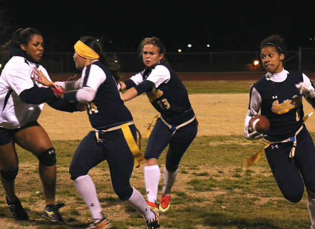The Boulder City girls flag football team, unbeaten and ranked second in the county, defeated visiting Coronado 48-0 Monday night to extend its streak of consecutive regular season victories to 30 games over a two-year span.
