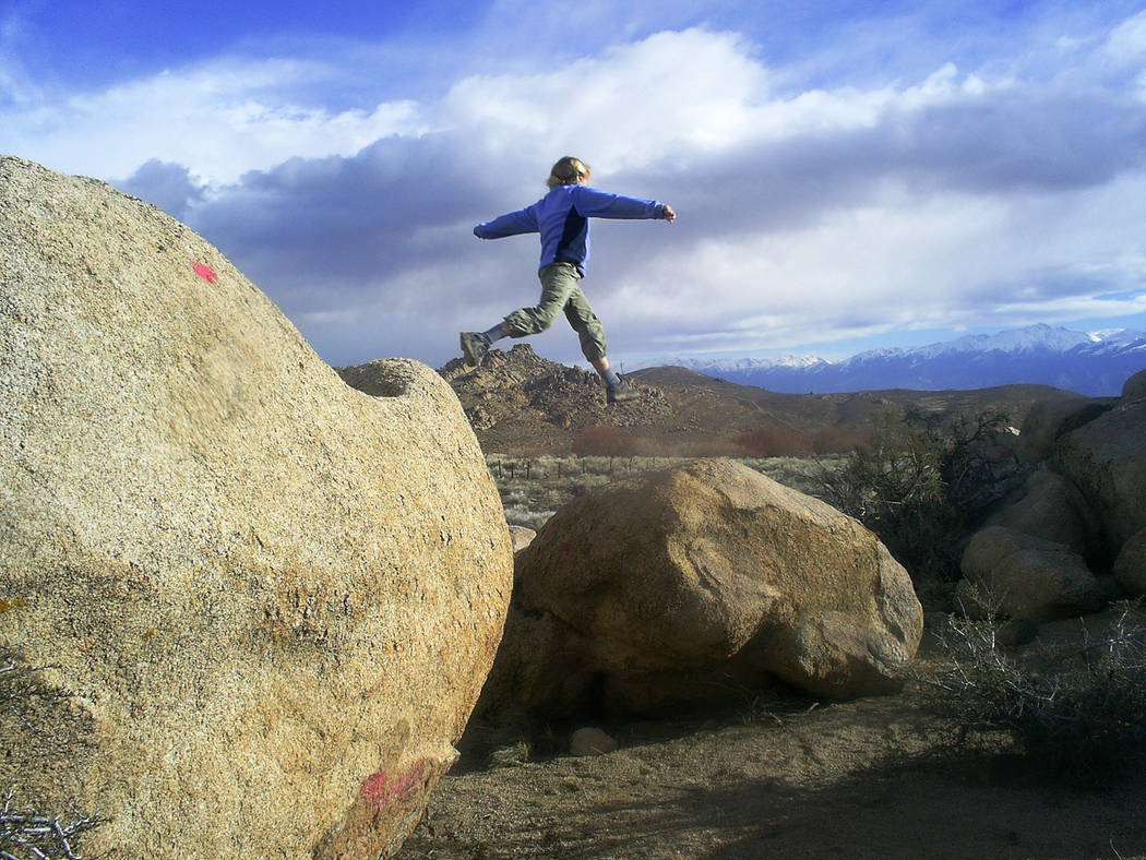 Even if you don’t drive the entire road, be sure to take a right on the well-maintained gravel road that leads to the Buttermilks. These are granite rock formations and are very famous, not only for their beauty but also for their bouldering opportunities. Bouldering involves focusing on a single boulder or small area where rock climbers solve the “problems” of how to best climb some short route. No ropes are used, just lots of powdered chalk to keep the hands dry for gripping. All smart people involved in this sport bring along a cushiony “crash pad” to land on if they fall.