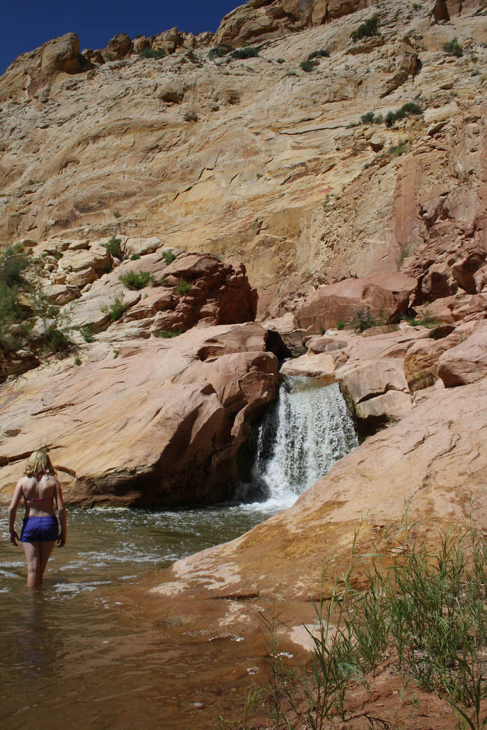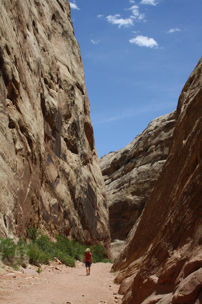First-time visitors might want to start with the 7-mile scenic drive that travels south from the visitor center. The road takes you by the Gifford Homestead, worth a stop just for the homemade ice cream and fruit pies, and after that the road travels along the Waterpocket Fold down to the Capitol Gorge Trail.