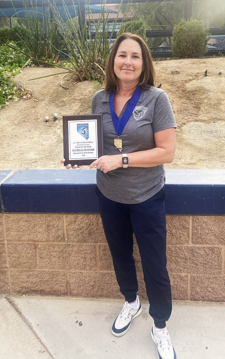 Helping the Eagles to a school record 32 victories and their third consecutive 3A state championship, Boulder City head volleyball coach Rachelle Huxford was named 3A coach of the year.