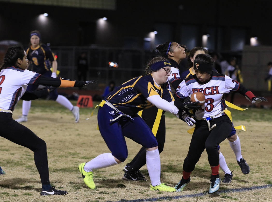 Boulder City High School girls flag football suffered a setback during its first league contest of the season, falling 20-14 to Southeast Career Technical Academy on Jan. 11.