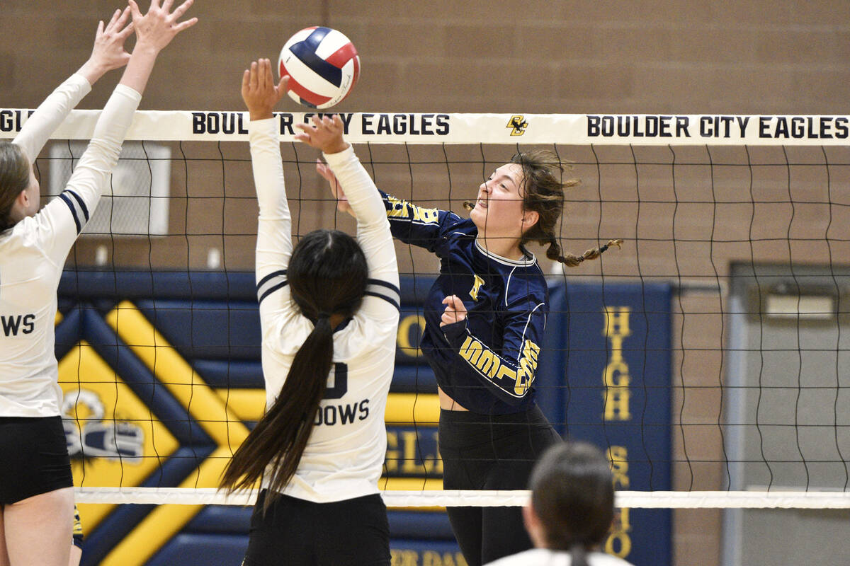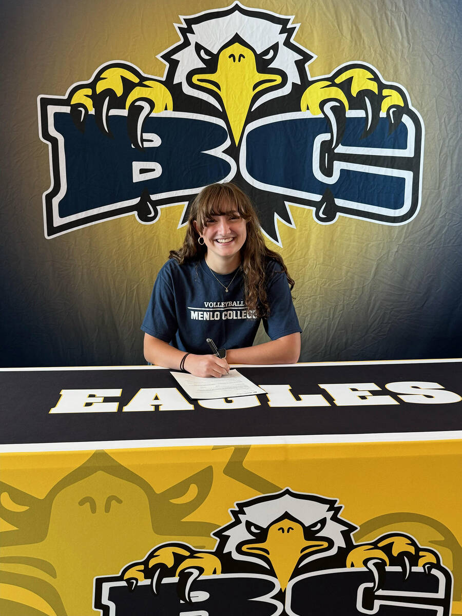 Moving up to the next level, senior Boulder City High School girls volleyball star Sophia Kelso committed to Menlo College to play Division II volleyball.